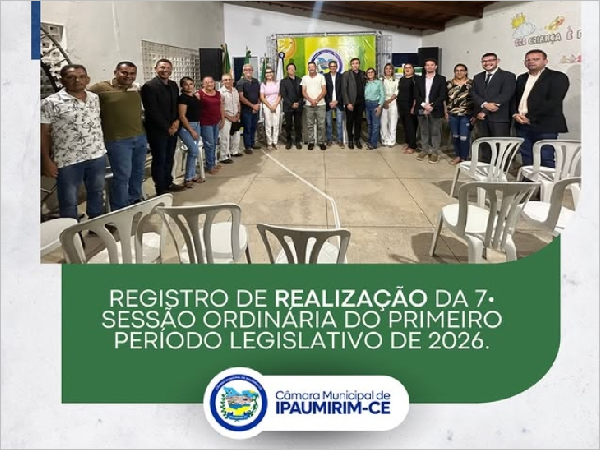 A Câmara Municipal de Ipaumirim/CE, realizou na tarde deste dia 18 de Março de 2026 no Distrito de Canauna, Município de Ipaumirim/CE, a sétima sessão ordinária e primeira sessão itinerante do primeiro período legislativo de 2026, com a presença de Vereadores, autoridades locais e a população em geral.