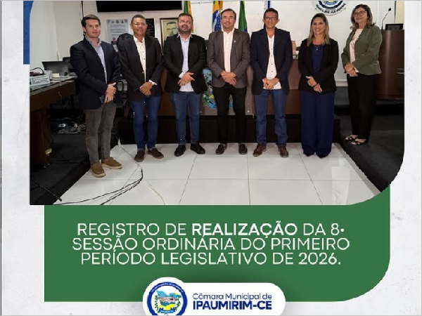 A Câmara Municipal de Ipaumirim/CE, realizou na tarde deste dia 25 de Março de 2026, a oitava sessão ordinária do primeiro período legislativo de 2026, com a presença de Vereadores, autoridades locais e a população em geral.